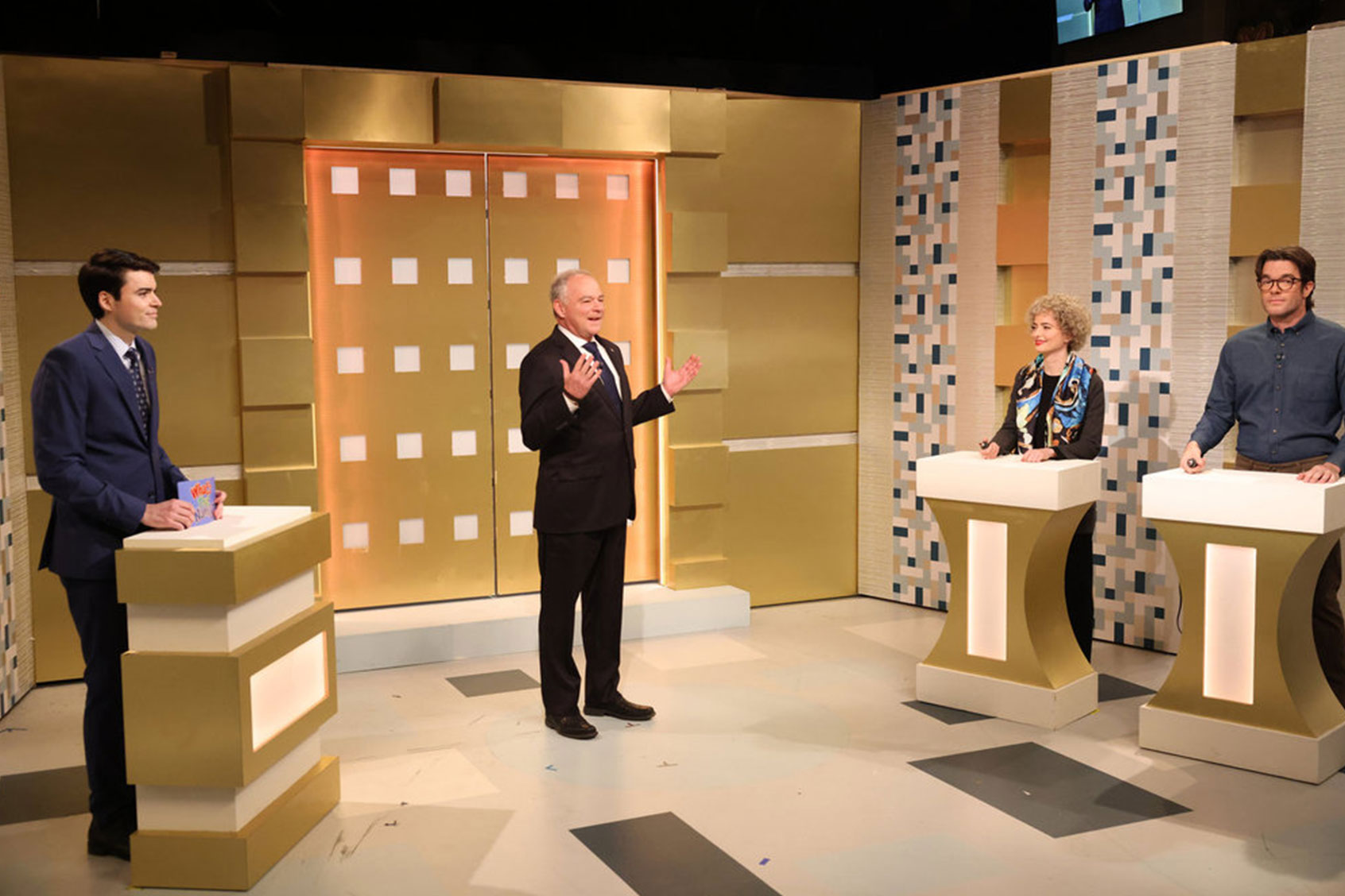 Michael Longfellow, Sen. Tim Kaine, Sarah Sherman as Margaret Atwood, and John Mulaney in an SNL sketch